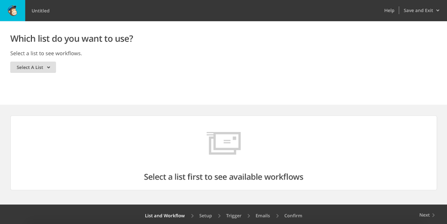 Once you’re there, you’ll be required to select a mailing list for the automation. Choose your preferred list and click the Next button in the bottom right corner.