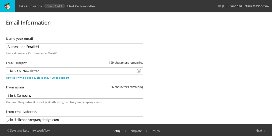 Once you've named the email and selected the email address that you would like the message to be sent from, click Next.