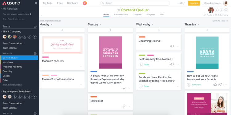 Enter my favorite (free) project management tool: Asana. Asana allows you to create projects and tasks and subtasks within those projects to stay on top of client work, internal work, and easily collaborate with your team. Asana continues to add integrations and can now be integrated with Gmail so you can even add tasks straight from your inbox to Asana so things don’t fall through the cracks.