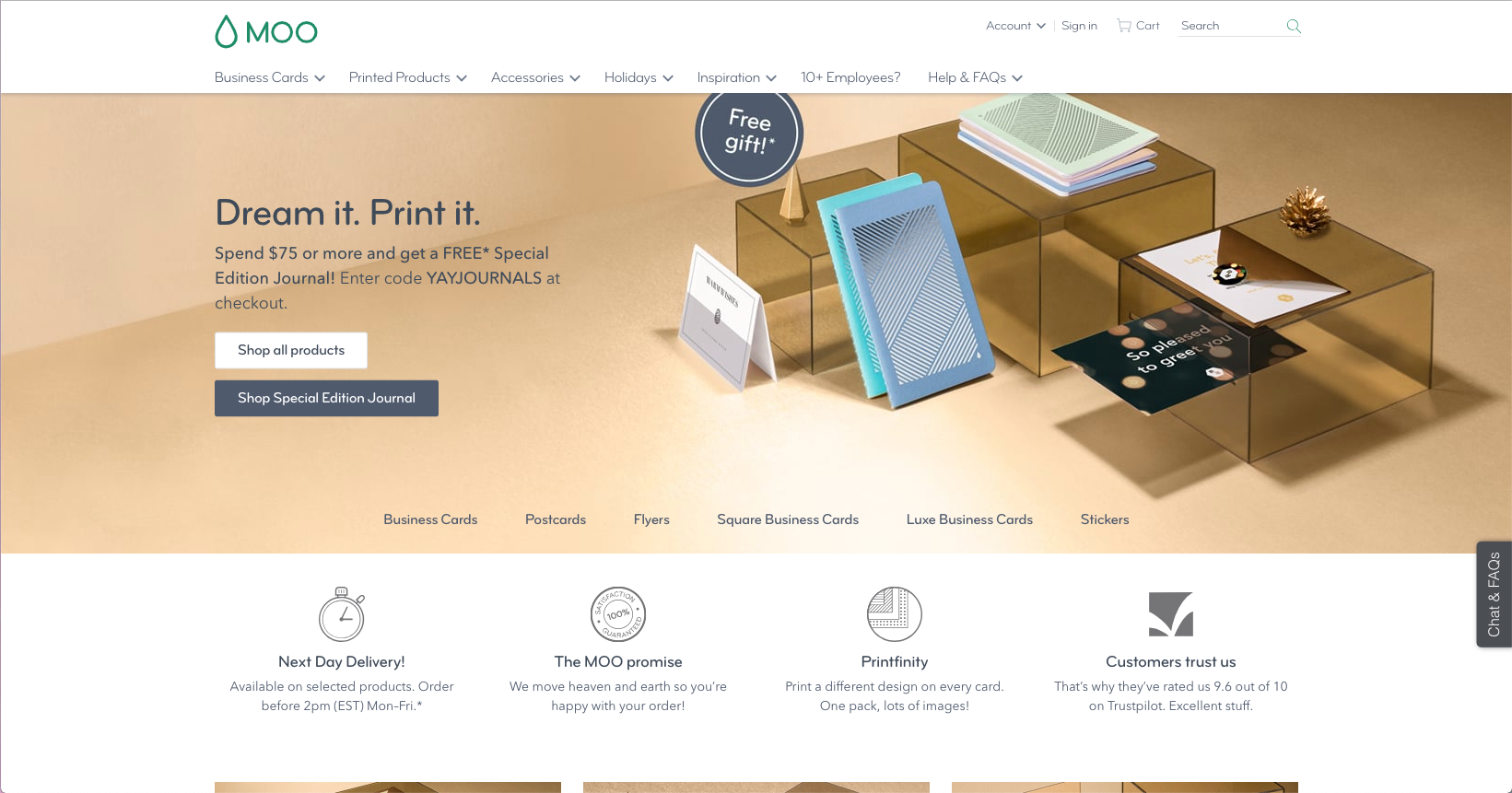 Moo, on the other hand, is a high-quality, one-stop-shop for all of your business printing needs. Moo’s wide selection of products, useful templates, and easy-to-use website make uploading and bringing your designs to life a breeze!
